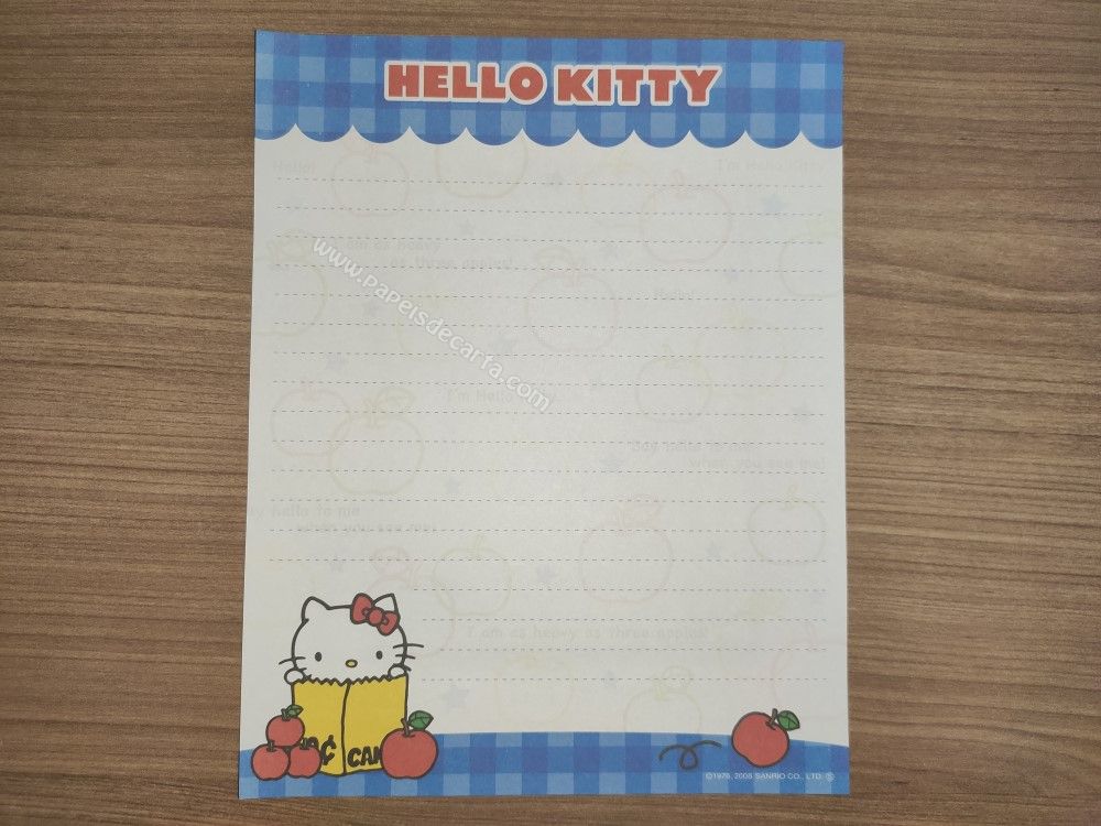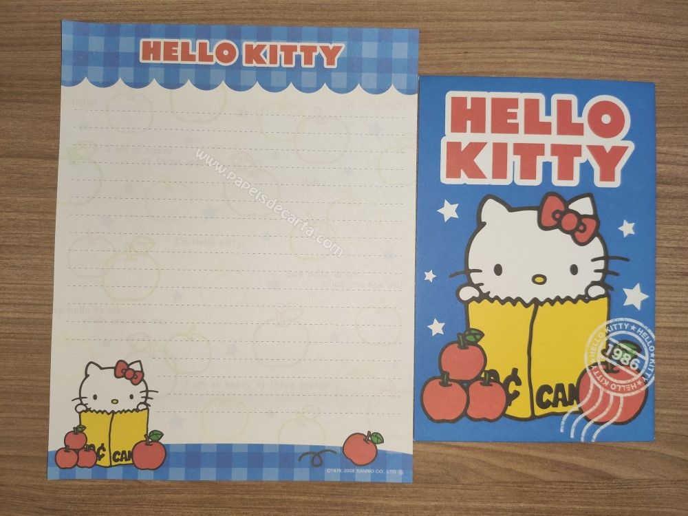 Conjunto antigo, de papel de carta da Hello Kitty, com 1 folha e 1 envelope, da Sanrio.