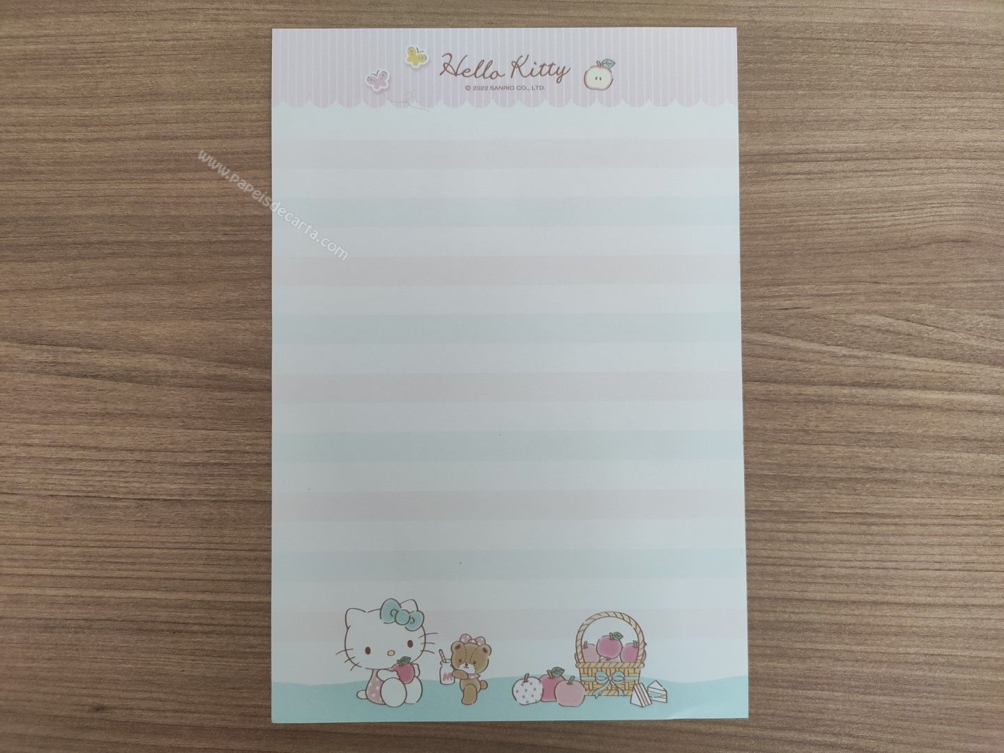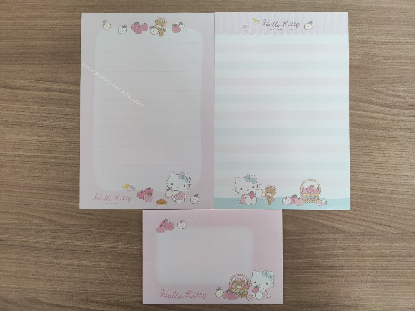 Conjunto de papel de carta importado da Hello Kitty, com 2 folhas e 1 envelope.
