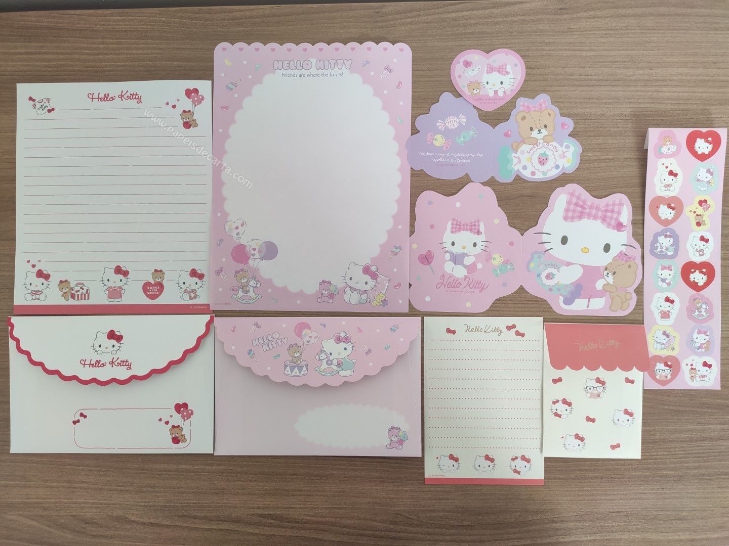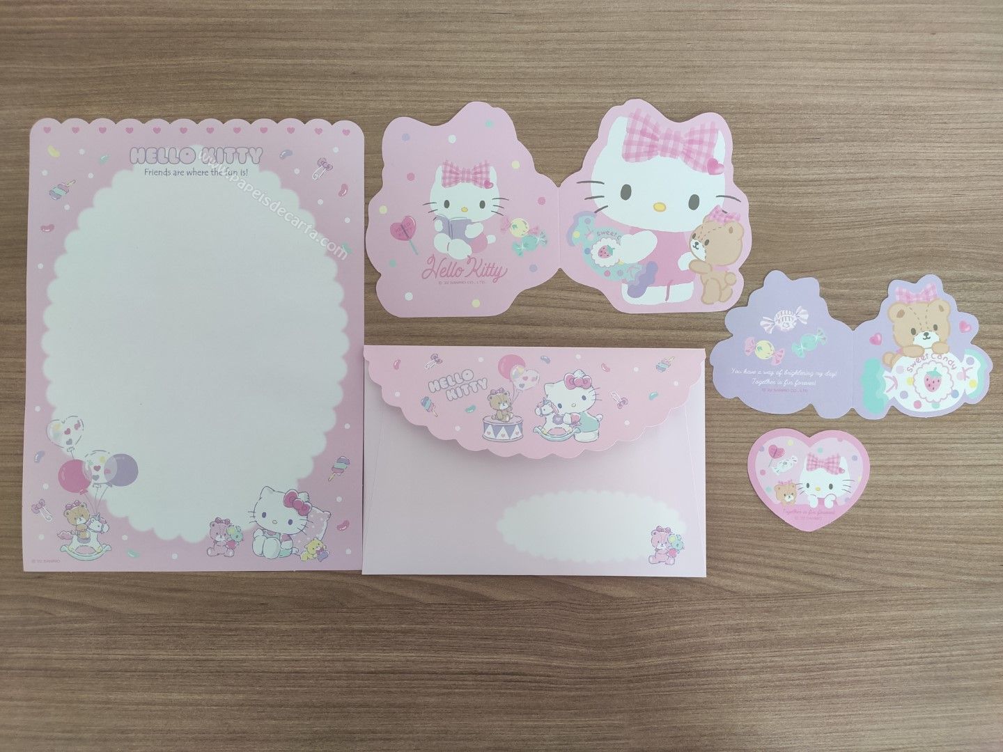 Lote de papel de carta importado com 2 conjuntos com 1 folha e 1 envelope cada, 1 mini conjunto, 3 memos e 1 cartela de adesivos.