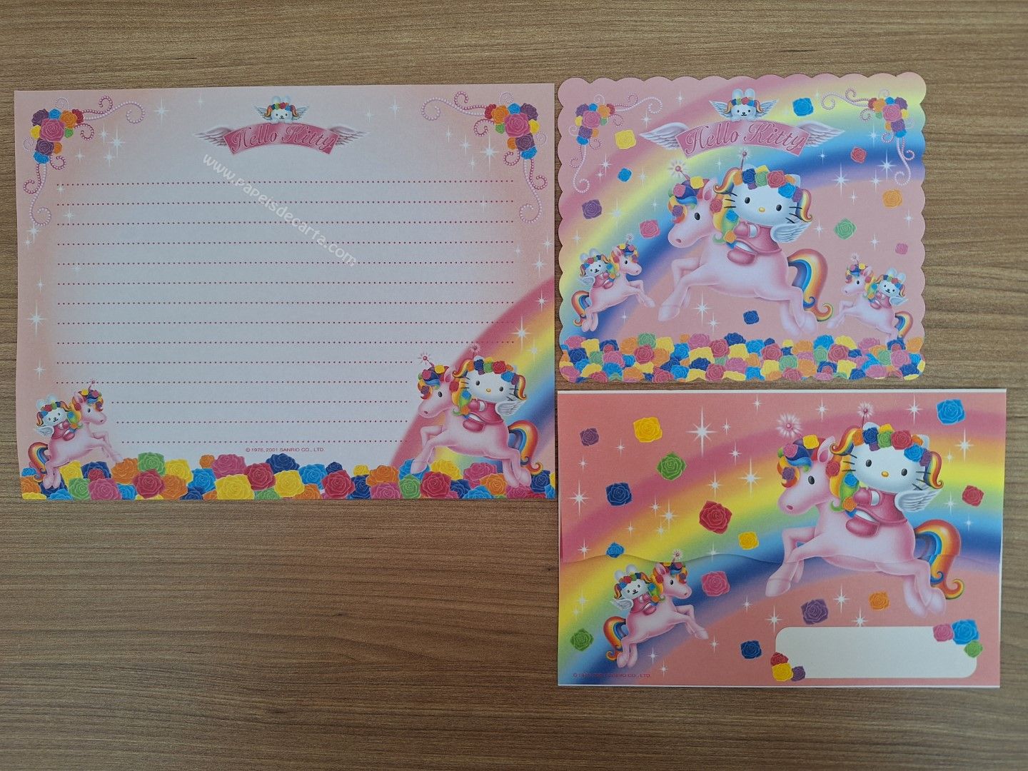 Conjunto importado de papel de carta da Hello Kitty - Sanrio, com 1 folha e 1 envelope e 1 memo.