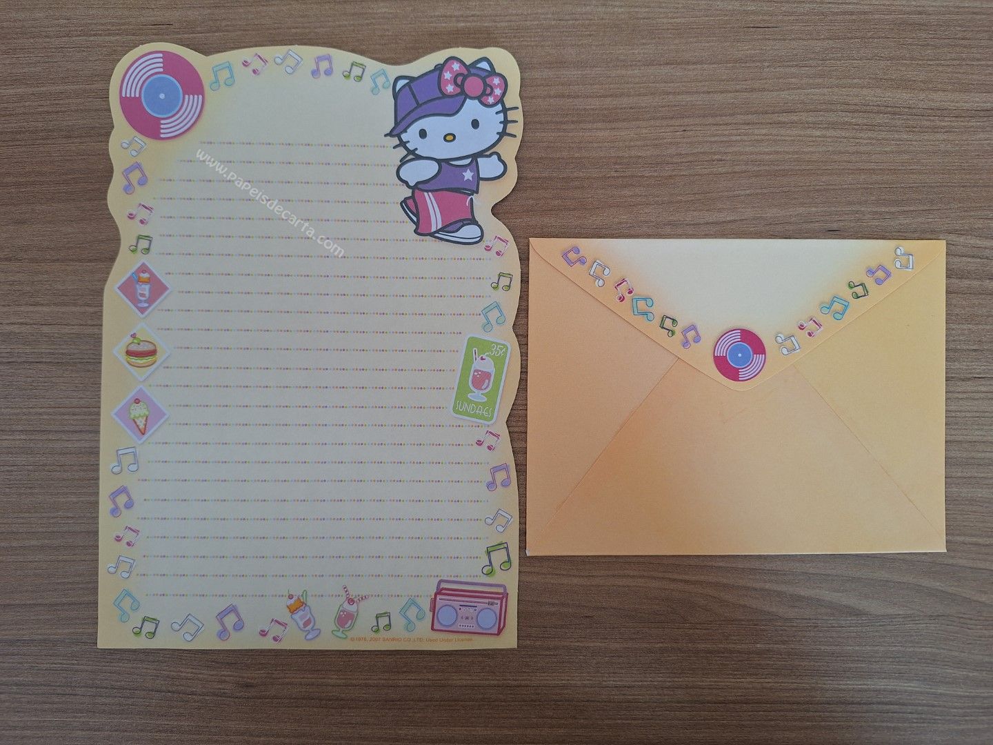 Conjunto importado de papel de carta da Hello Kitty - Sanrio, com 1 folha e 1 envelope.