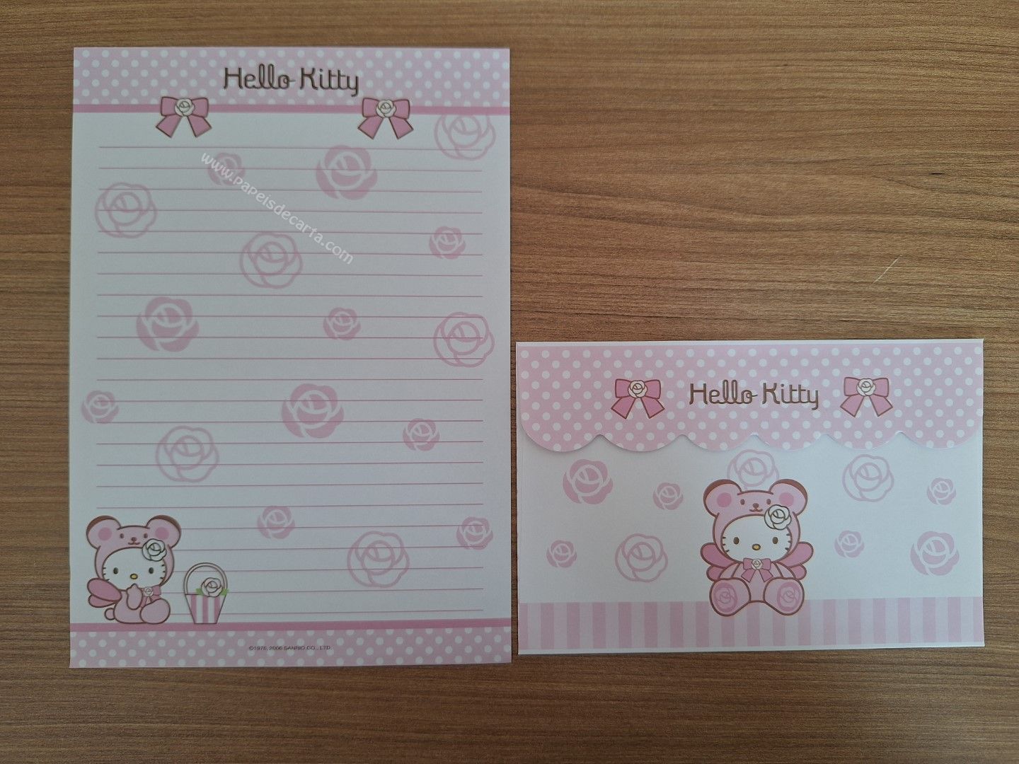 Conjunto importado de papel de carta da Hello Kitty - Sanrio, com 1 folha e 1 envelope.