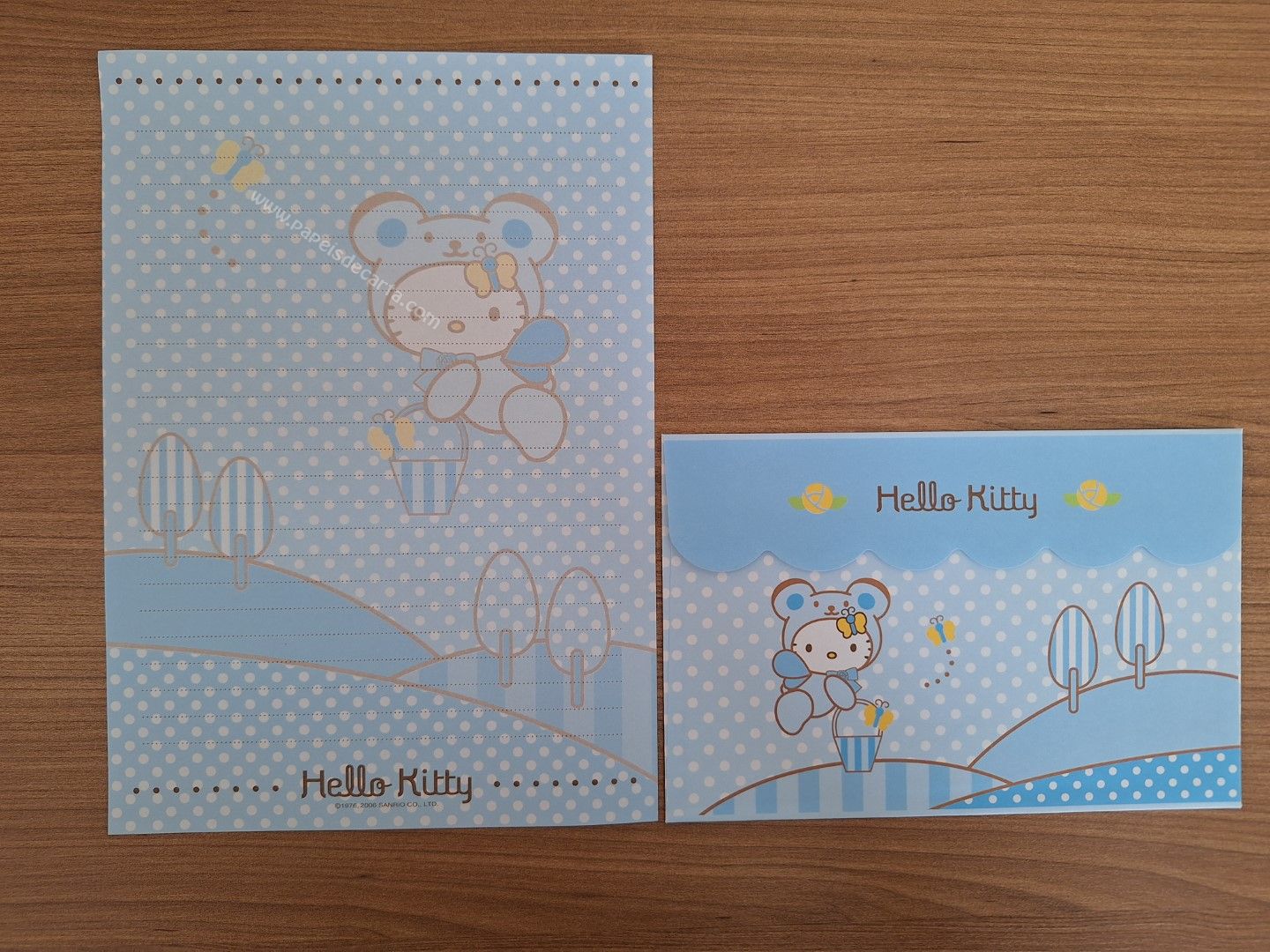 Conjunto importado de papel de carta da Hello Kitty - Sanrio, com 1 folha e 1 envelope.