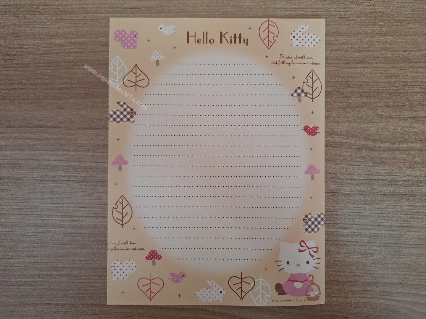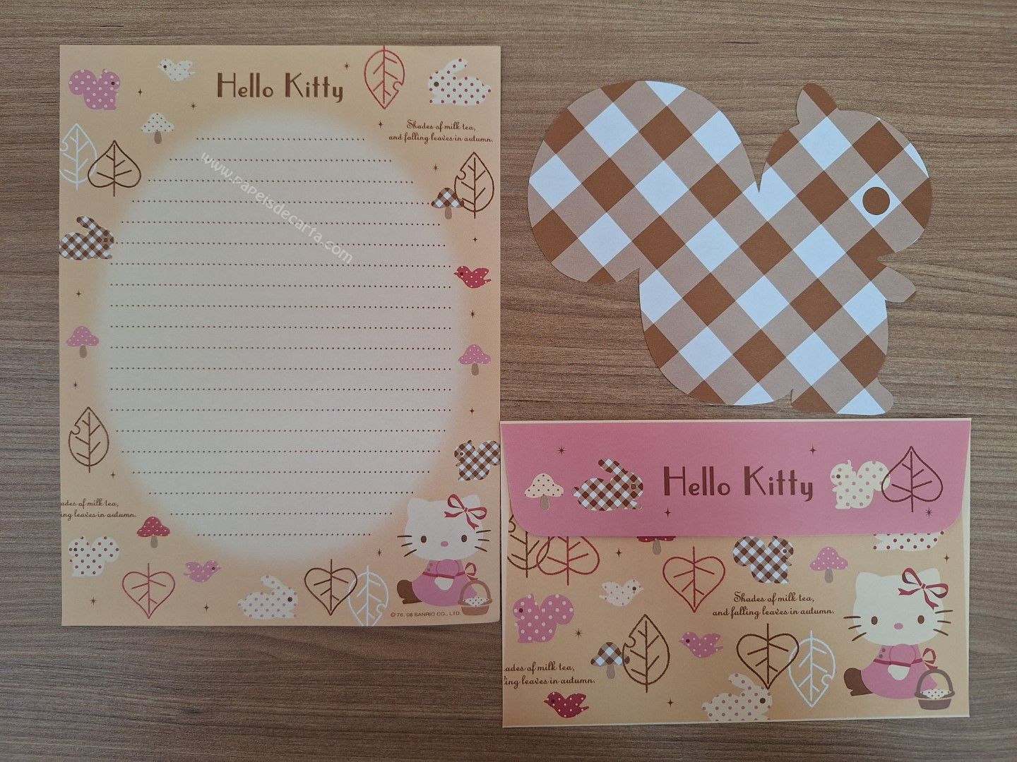 Conjunto importado de papel de carta da Hello Kitty - Sanrio, com 1 folha, 1 memo e 1 envelope.
