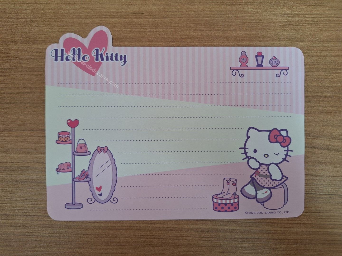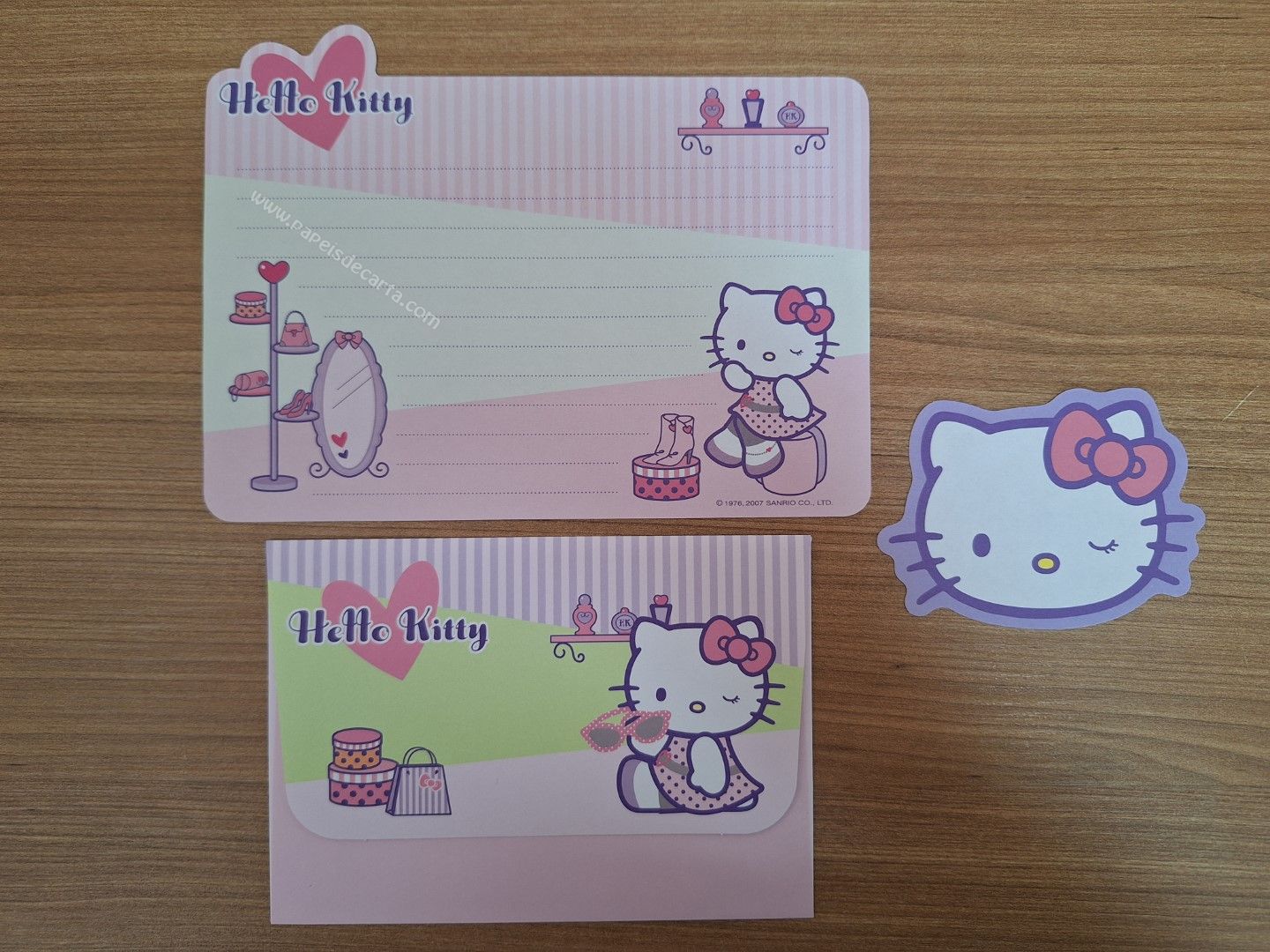 Conjunto importado de papel de carta da Hello Kitty - Sanrio, com 1 folha, 1 memo e 1 envelope.