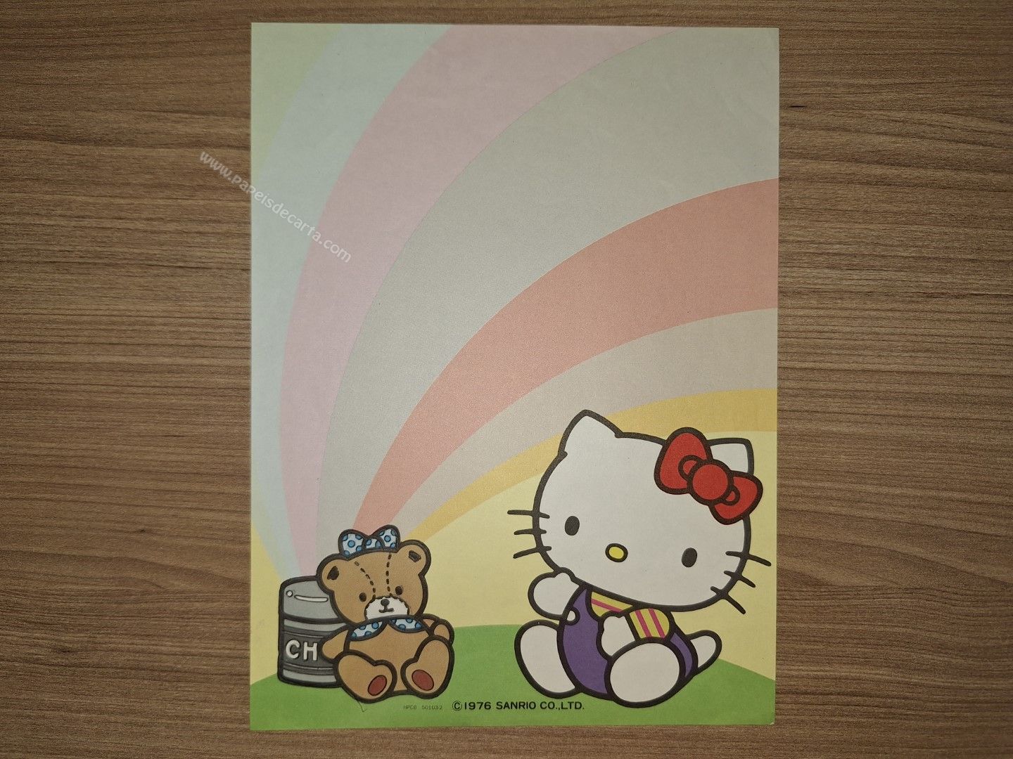 Papel de carta da Hello Kitty - Sanrio. ** O URSINHO ESTÁ CONTORNADO DE LÁPIS. VER FOTO. **