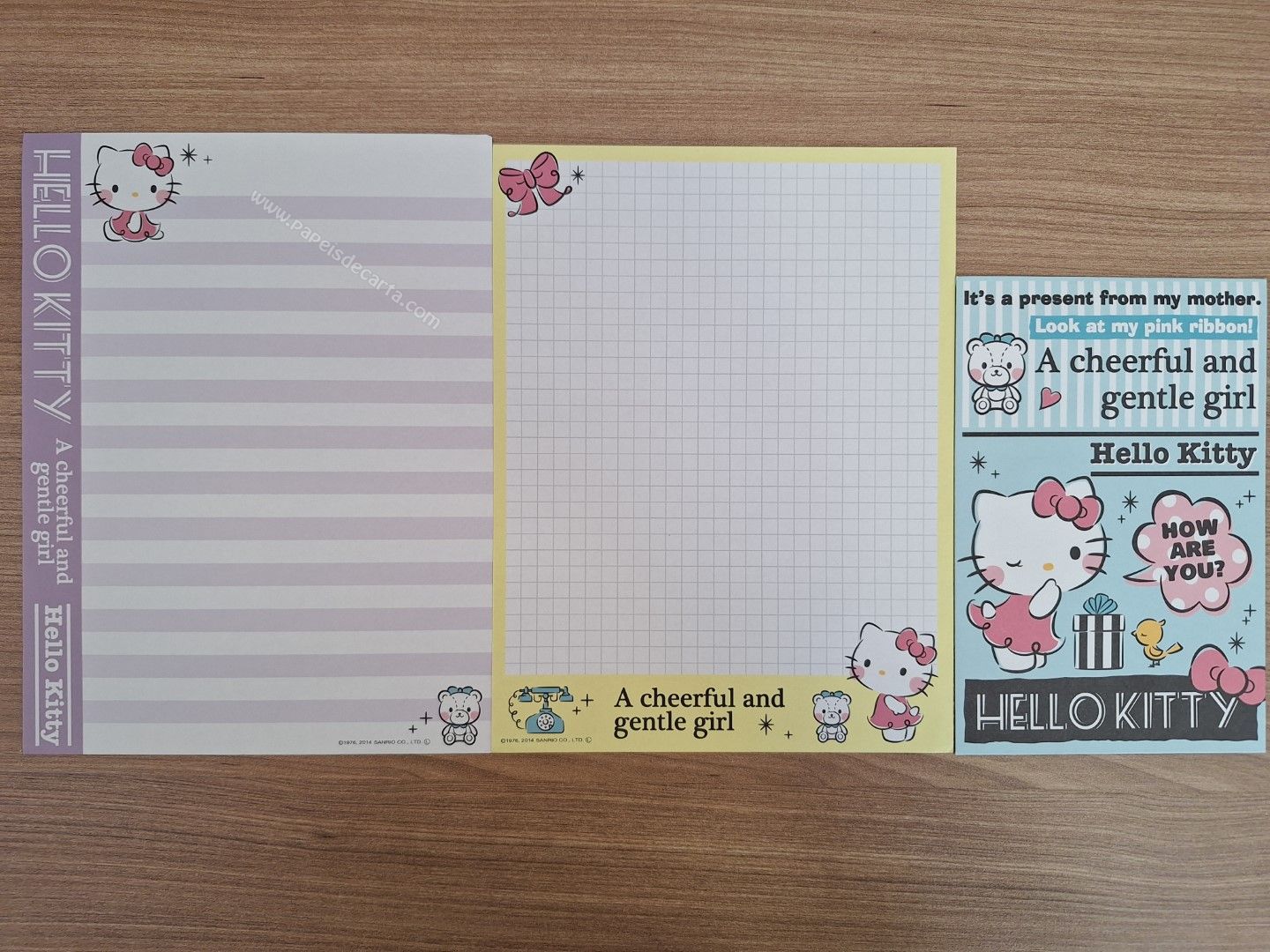 Conjunto importado de papel de carta da Hello Kitty, tamanho médio, com 2 folhas e 1 envelope. Sanrio.