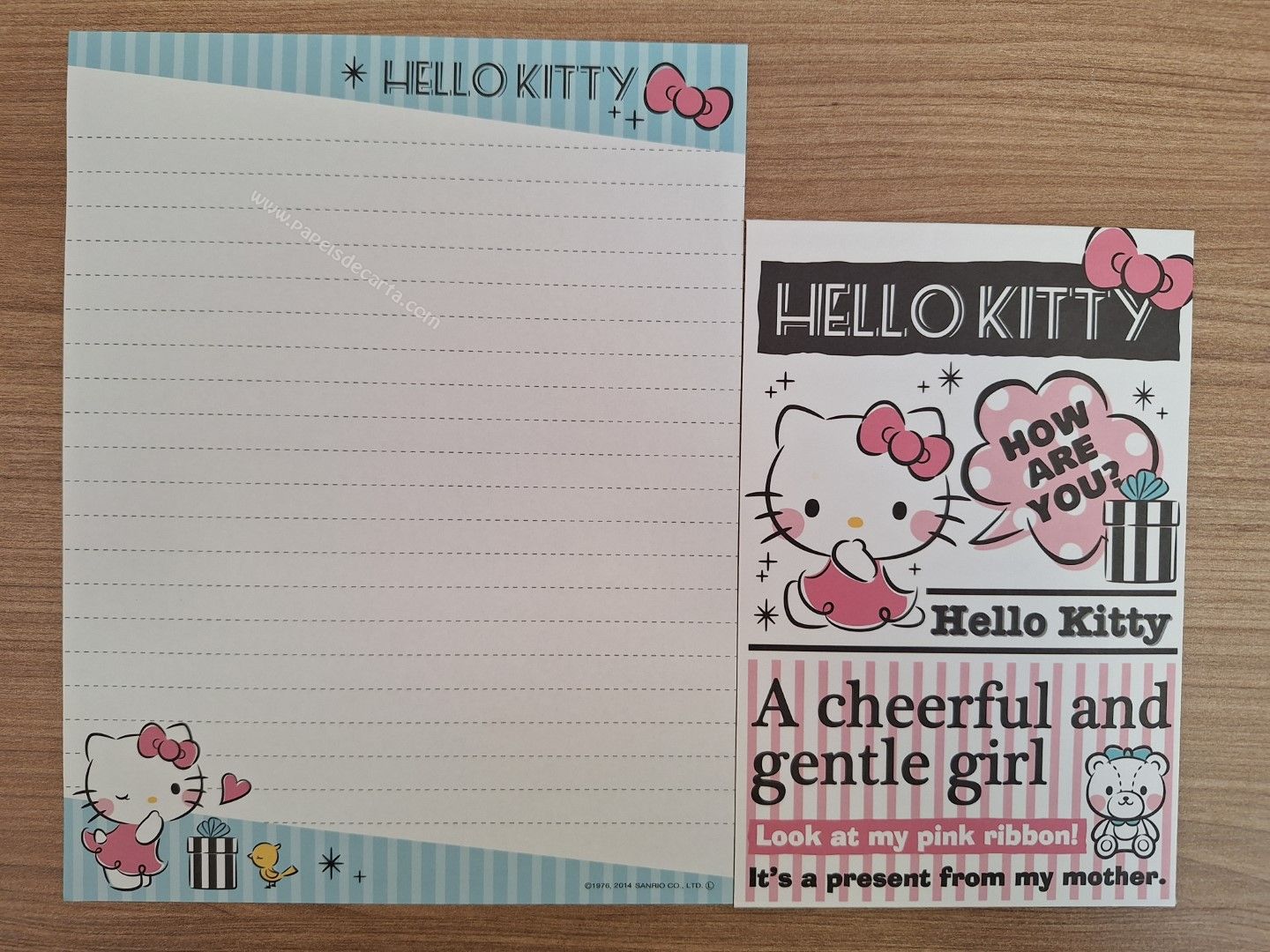Conjunto importado de papel de carta da Hello Kitty, tamanho médio, com 1 folha e 1 envelope. Sanrio.