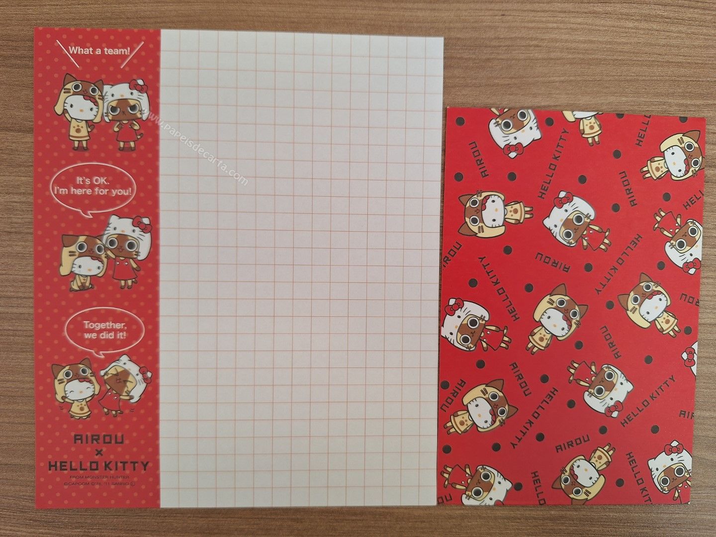 Conjunto importado de papel de carta da Hello Kitty, tamanho médio, com 1 folha e 1 envelope. Sanrio.