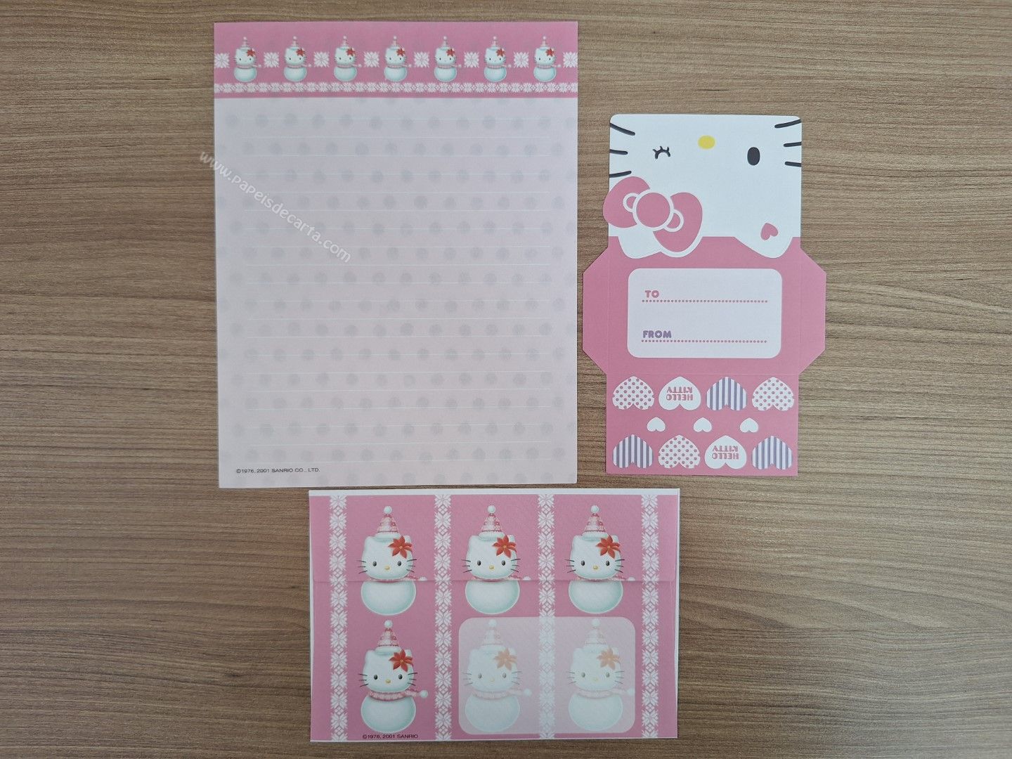 Conjunto importado de papel de carta da Hello Kitty, tamanho médio, com 1 folha, 1 notinha e 1 envelope. Sanrio.