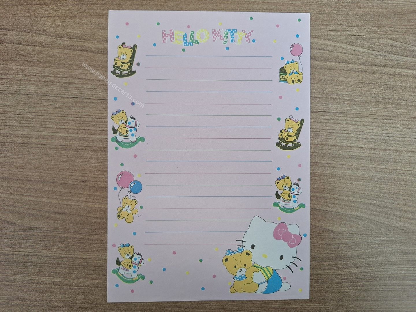 Papel de carta antigo da Hello Kitty, Sanrio.