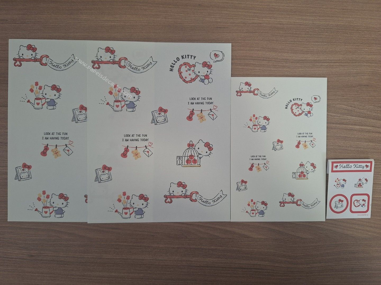 Conjunto de Papel de carta da Hello Kitty, Sanrio, com 2 folhas, 1 envelope e 1 adesivo.