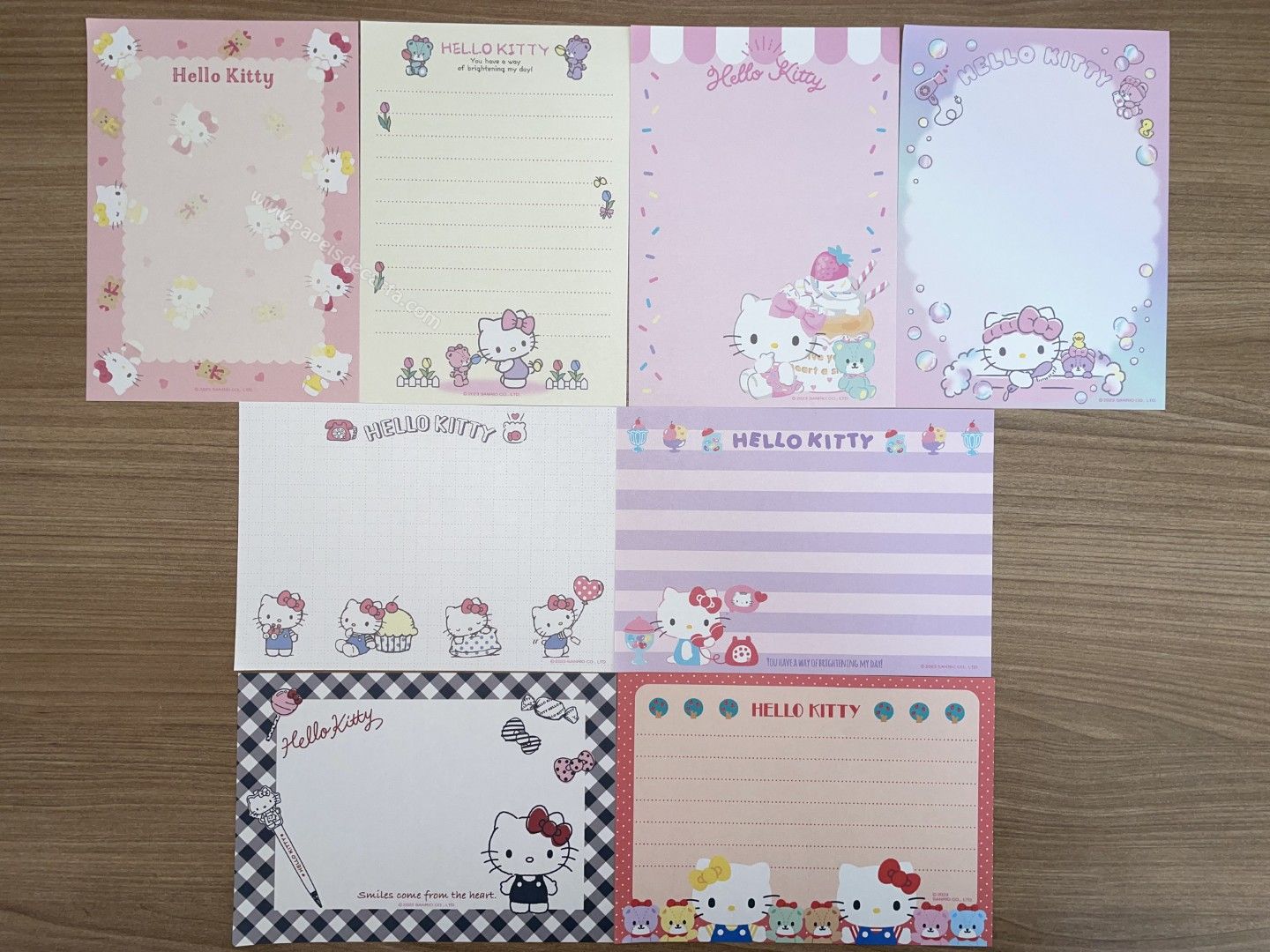 Conjunto importado, de papel de carta com 8 papéis diferentes da Hello Kitty, tamanho pequeno. 10,5cm larg x 15cm alt.