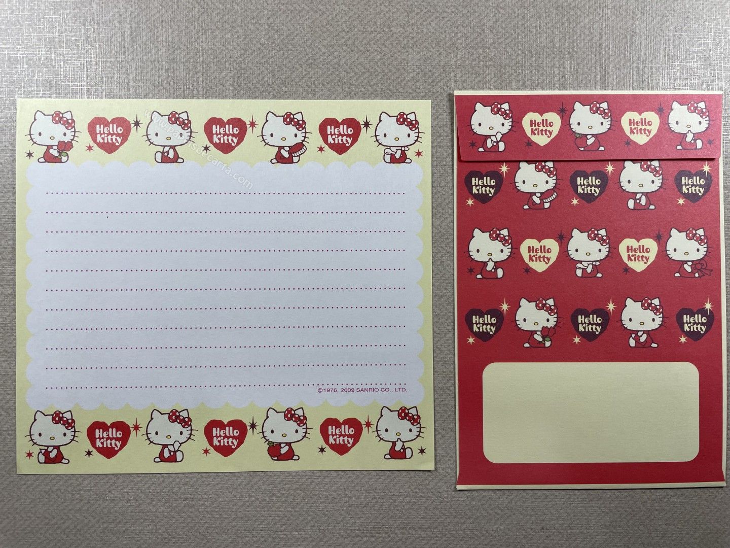 Conjunto de Papel de carta importado da Hello Kitty, Sanrio, com 1 folha e 1 envelope. Tamanho médio.
