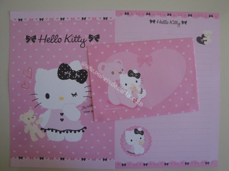 Conjunto com 2 folhas e 1 envelope da Hello Kitty 128