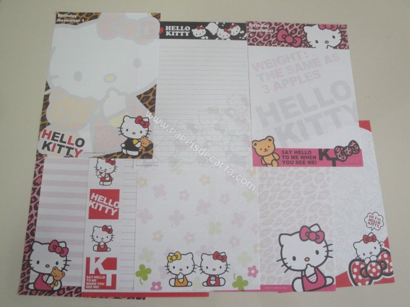 Conjunto com 8 folhas da Hello Kitty 01
