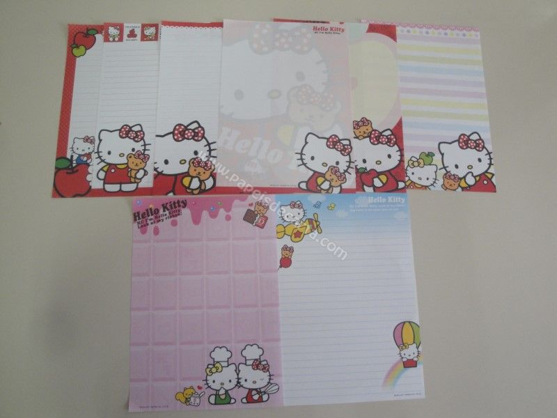 Conjunto importado, de papel de carta da Hello Kitty, da Sanrio, com 4 folhas diferentes.