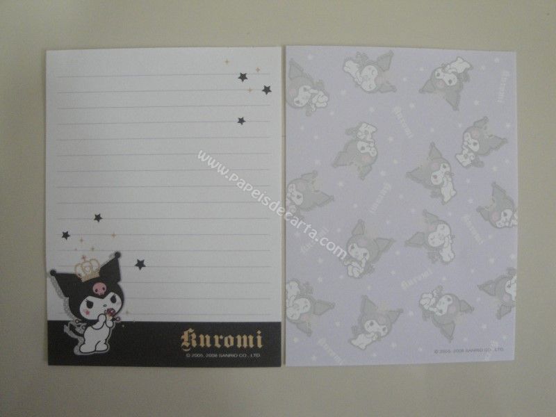 Conjunto importado, de papel de carta com 2 notinhas diferentes da Hello Kitty Kuromi.