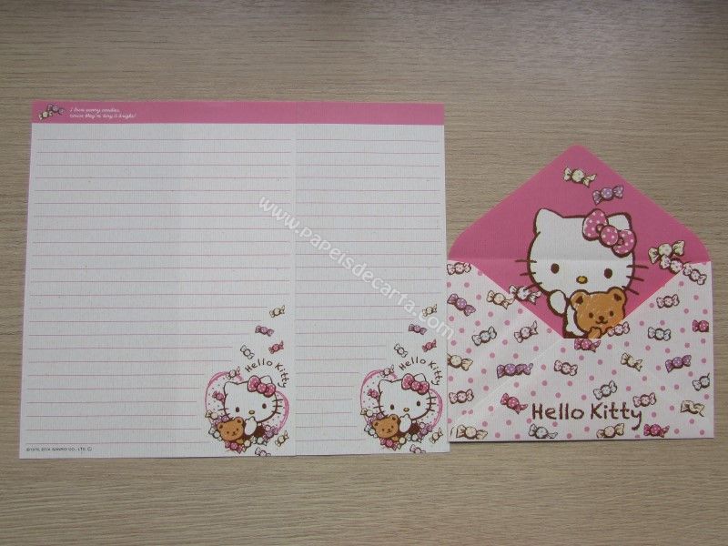 Conjunto importado, de papel de carta da Hello Kitty, com 2 folhas iguais e 1 envelope, da Sanrio. Fabricante: Sanrio.