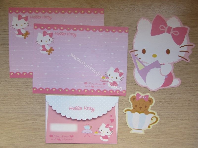 Conjunto importado, de papel de carta da Hello Kitty, com 2 folhas diferentes, 2 notinhas e 1 envelope, da Sanrio.