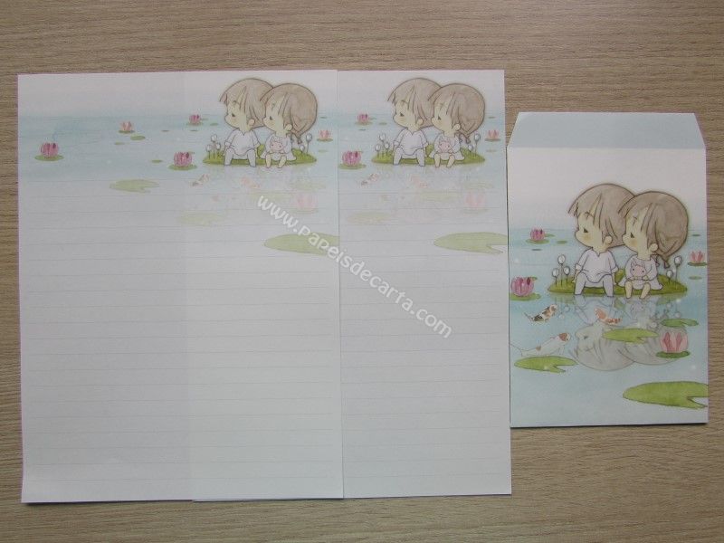 Conjunto importado, de papel de carta da Amy & Tim, com 2 folhas iguais e 1 envelope.