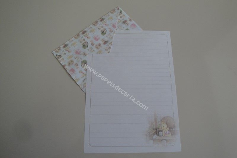 Conjunto importado, de papel de carta da Amy & Tim, com 1 folha e 1 envelope.