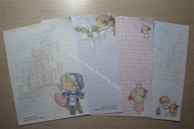 Conjunto importado, de papel de carta com 4 folhas pequenas diferentes da Amy & Tim.