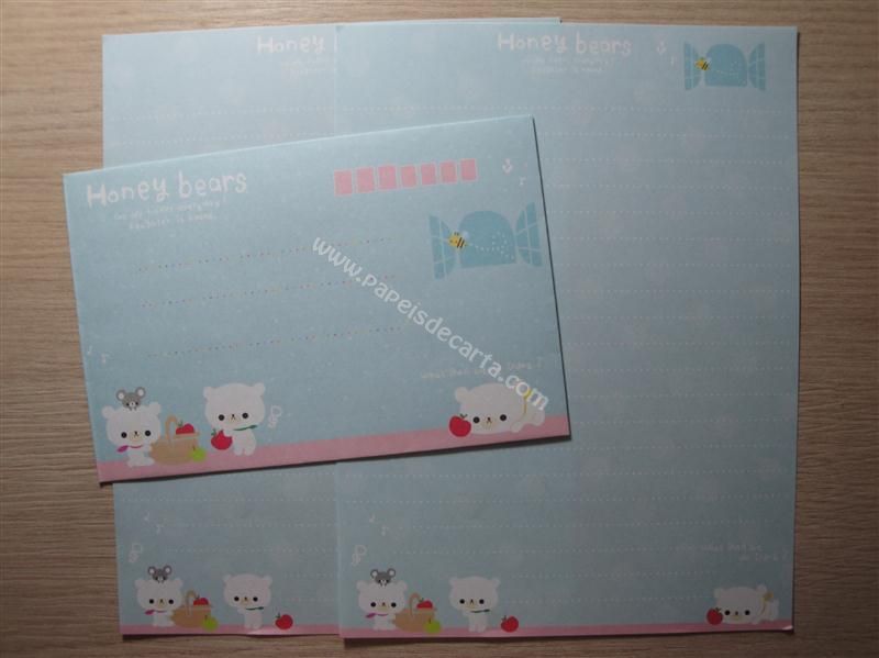 Conjunto importado, de papel de carta com 2 folhas iguais e 1 envelope do Honey Bears.