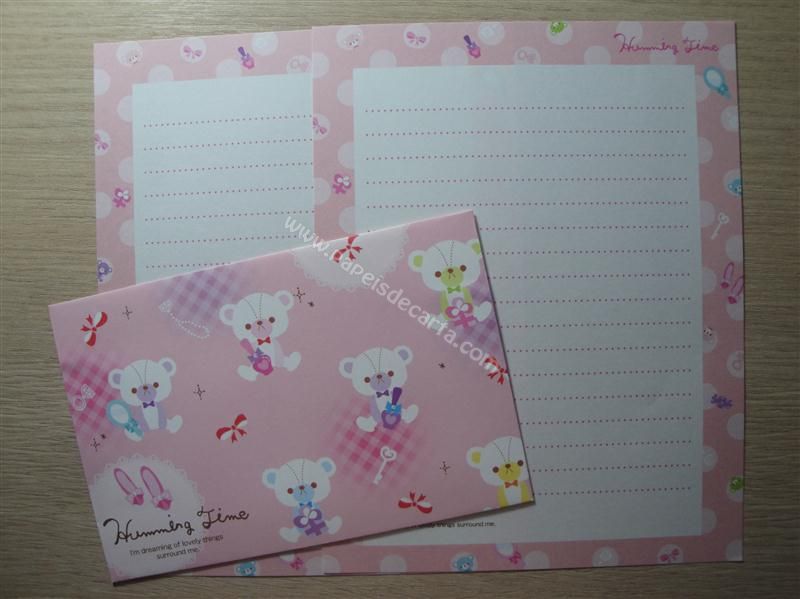 Conjunto importado, de papel de carta com 2 folhas iguais e 1 envelope do Humming Time.