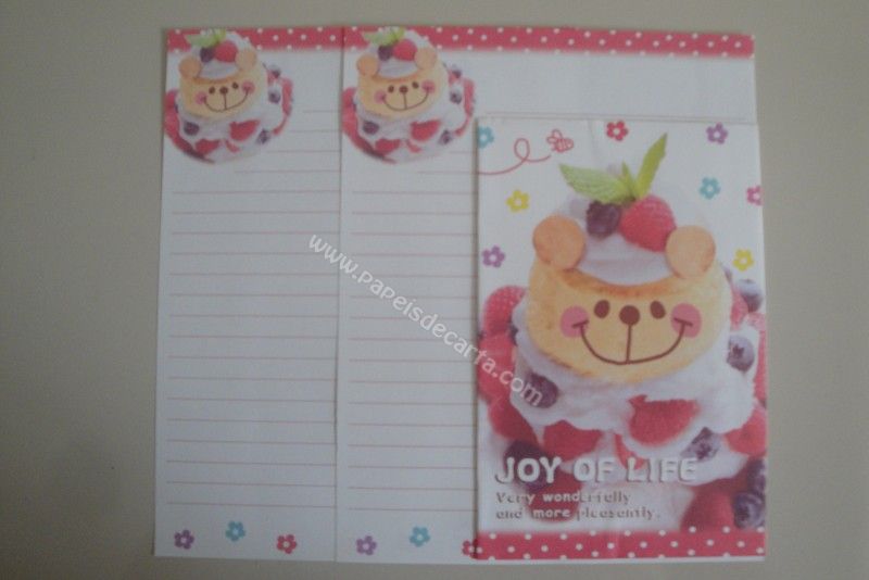 Conjunto importado, de papel de carta com 2 folhas iguais e 1 envelope do Joy of Life.