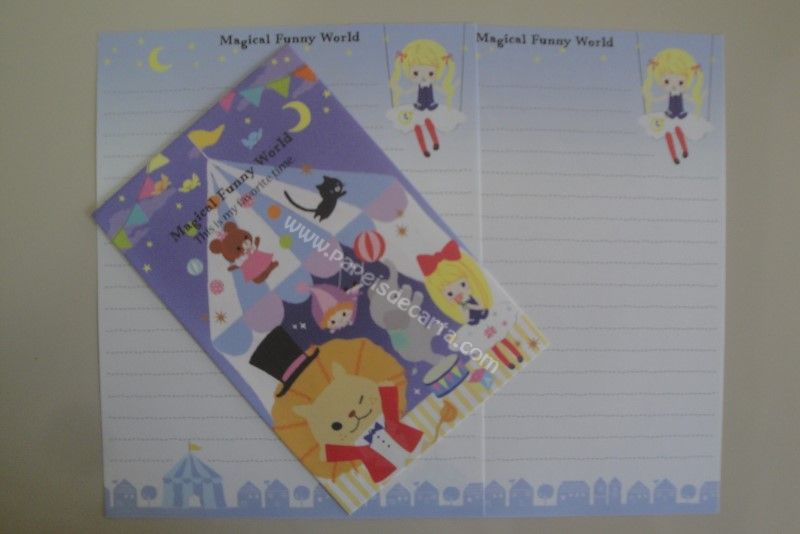 Conjunto importado, de papel de carta com 2 folhas iguais e 1 envelope do Magical Funny World. Fabricante: Kamio