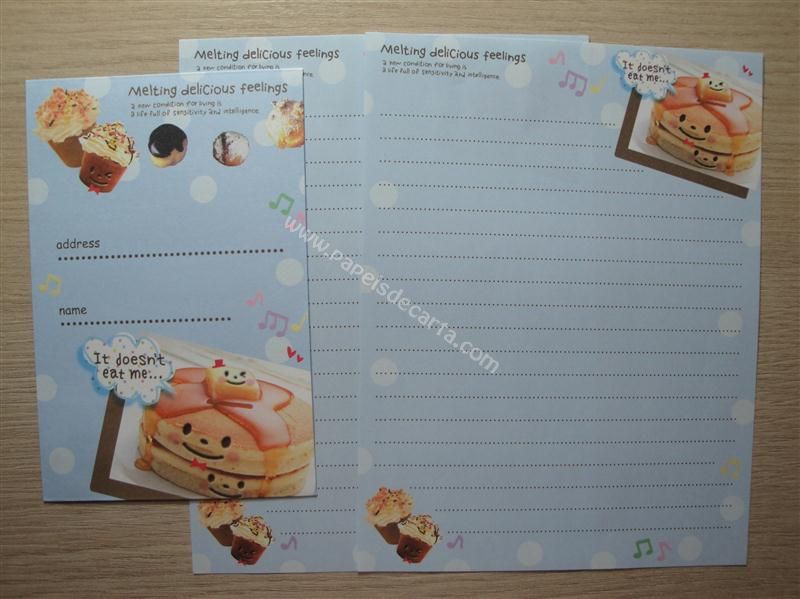 Conjunto importado, de papel de carta com 2 folhas iguais e 1 envelope do Melting Delicious Feelings.