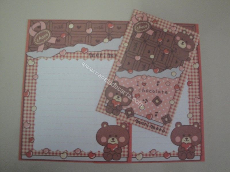 Conjunto importado, de papel de carta do Merimero, com 2 folhas iguais e 1 envelope.