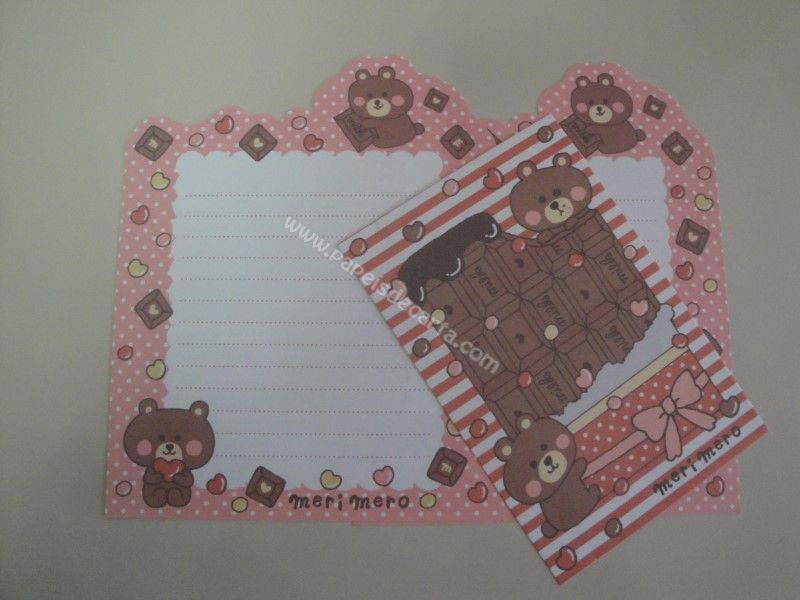 Conjunto importado, de papel de carta do Merimero, com 2 folhas iguais e 1 envelope.