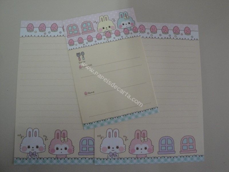 Conjunto importado, de papel de carta do Merimero, com 2 folhas iguais e 1 envelope.
