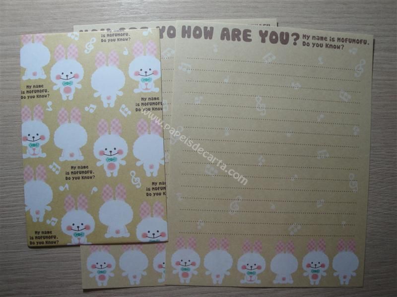 Conjunto importado, de papel de carta com 2 folhas iguais e 1 envelope do Mofumofu.