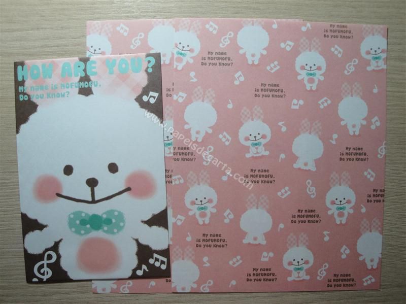 Conjunto importado, de papel de carta com 2 folhas iguais e 1 envelope do Mofumofu.