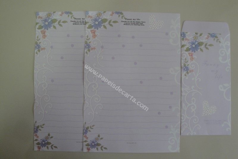 Conjunto importado, de papel de carta da Ninge, com 2 folhas iguais e 1 envelope. Frases: - Funny my life. - Thanks for all the happy times I never would have had Without you sharing them.