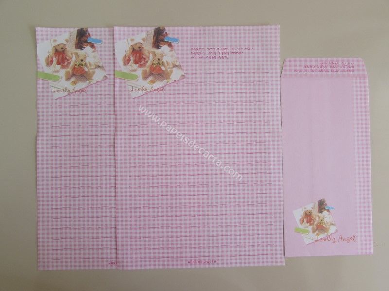Conjunto importado, de papel de carta da Ninge, com 2 folhas iguais e 1 envelope. Frase: Lovely Angel.