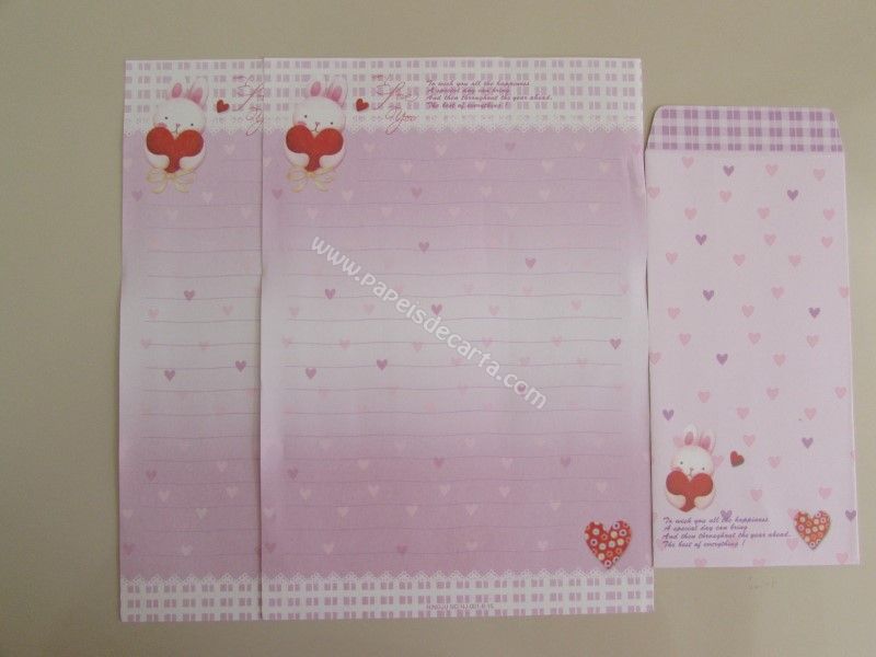Conjunto importado, de papel de carta da Ninge, com 2 folhas iguais e 1 envelope. Frase: I love you.
