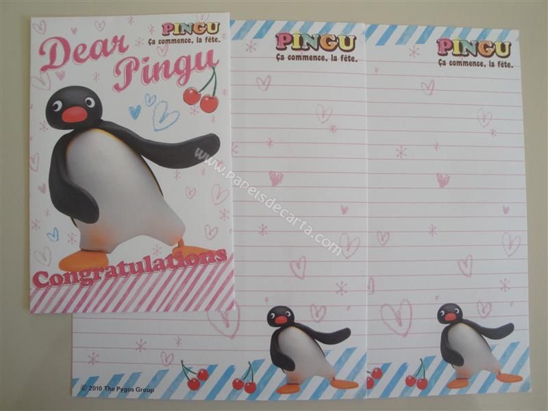 Conjunto com 2 folhas e 1 envelope do Pingu 02