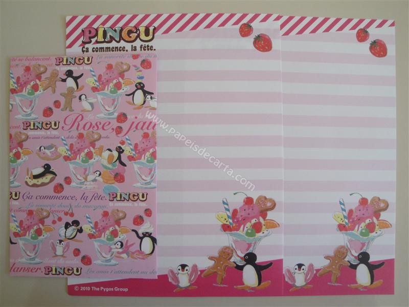 Conjunto importado, de papel de carta com 2 folhas iguais e 1 envelope do Pingu.