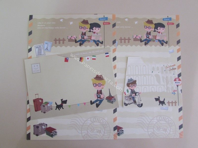 Conjunto importado, de papel de carta com 2 folhas iguais, 1 envelope e 1 notinha do Season. Frase: Like it at your side because you are my happy only factor... Tema: Itália.