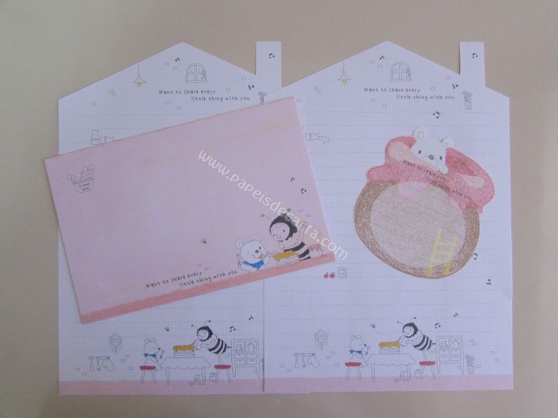 Conjunto importado, de papel de carta com 2 folhas iguais, 1 envelope e 1 notinha do Season. Frase: Want to share every little thing with you.