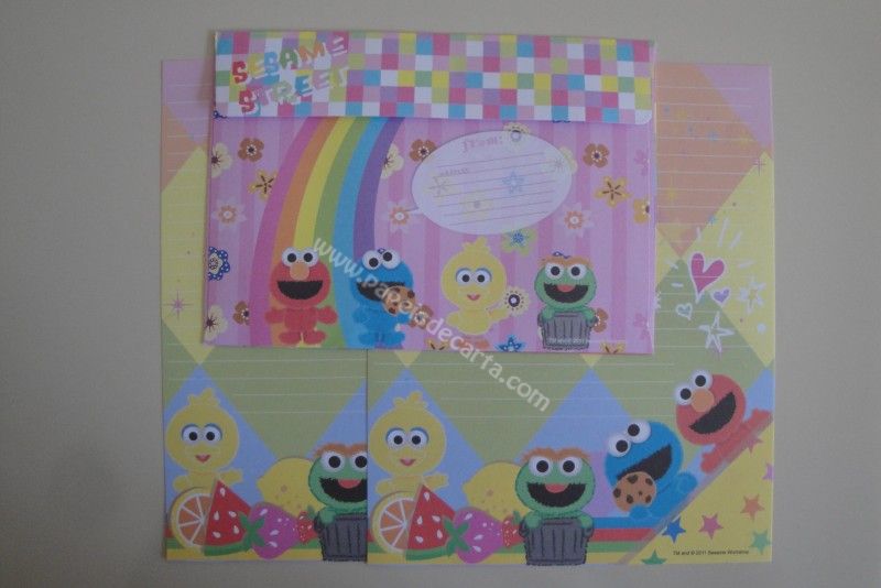 Conjunto importado, de papel de carta com 2 folhas iguais e 1 envelope da Sesame Street.