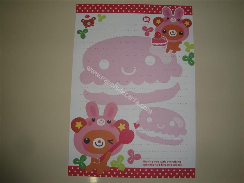 Papel de carta importado da Sweet Bear Family. Frase: Sharing you with everything openhearted bits and pieces.