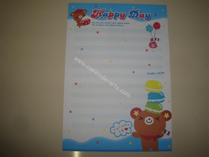 Papel de carta importado da Sweet Bear Family. Frase: Happy Day - My favorite pastel color happy happy. Full of hopes and sweet dreams.