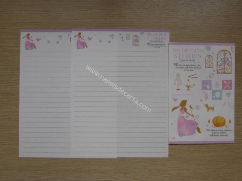 Conjunto importado, de papel de carta da coleção The Dreaming Stories, contendo 2 folhas iguais e 1 envelope. Modelo: Cinderella 01 Fabricante: Crux.