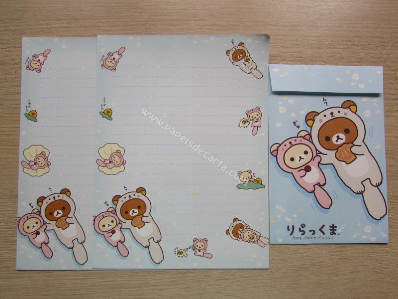 Conjunto de papel de carta importado, com 2 folhas iguais e 1 envelope da coleção Rilakkuma, da San-X.