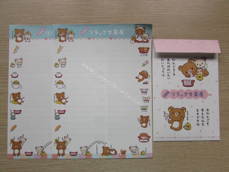 Conjunto de papel de carta importado, com 2 folhas iguais e 1 envelope da coleção Rilakkuma, da San-X.